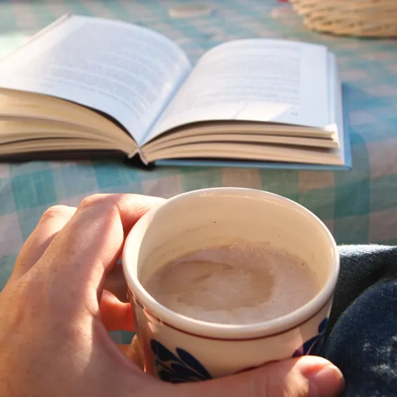 På bokfrukosten tipsar man varandra om böcker och filmer. Det är gratis och biblioteket bjuder på kaffe/te och smörgås.