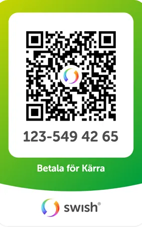 - Betala med Swish tillsammans vid bokning, uppge kärrans registrerings nr.